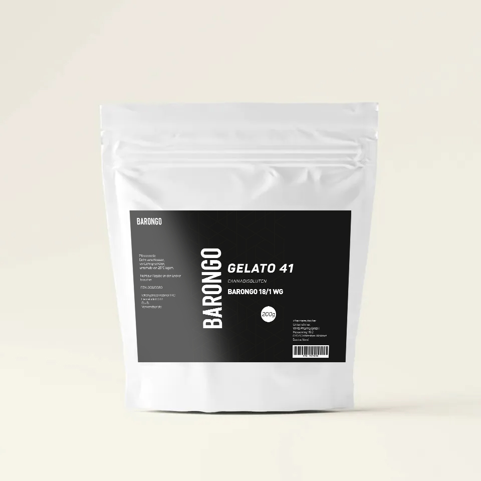 Gelato 41 ist eine Indica-dominante Hybrid-Blüte und eine Kreuzung aus den Kultivaren Sunset Sherbert x Girl Scout Cookies. Die Cannabisblüten weisen einen THC-Gehalt von 18% (genauer Wirkstoffgehalt auf der Verpackung) auf. Die Blüten können inhalativ oder oral eingenommen werden.